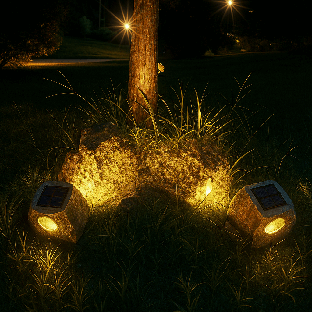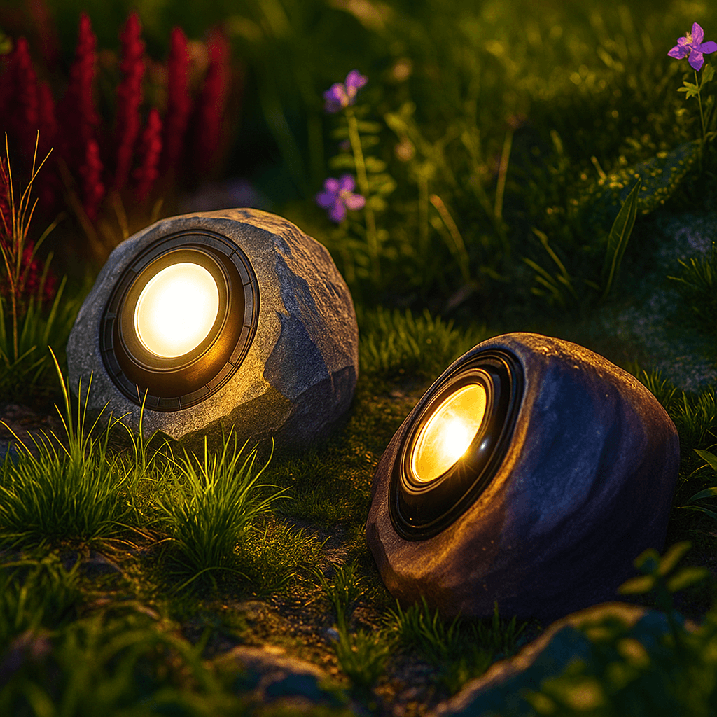 These subtle light sources look like ordinary stones, but as soon as the sun goes down they bring a warm, natural glow to your garden.