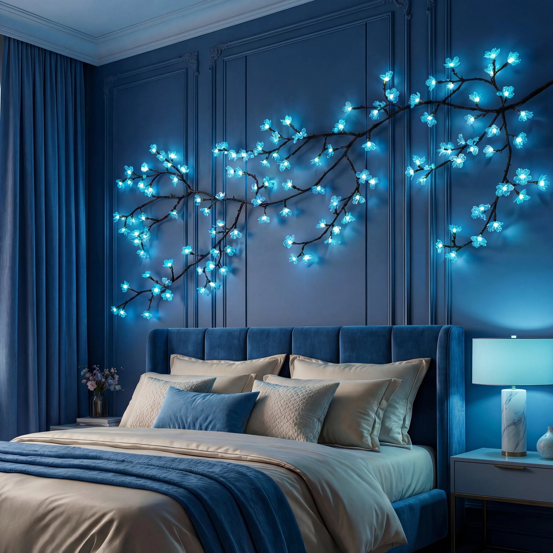 Bring a fresh, magical touch to your space with the Iced Blossom Vine. Its delicate blue blossoms and soft, warm glow create a calm, dreamy atmosphere that feels especially beautiful in the evening. Drape it along a wall, around a mirror, or above a cozy corner to add gentle ambience without clutter. Elegant, soothing, and easy to style. Perfect for everyday comfort or a special moment at home.