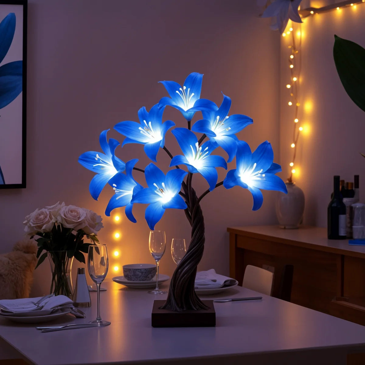 The soft LED lighting and graceful lilies create a warm and soothing ambiance in any room. Perfect for the living room, bedroom, or as a unique gift!