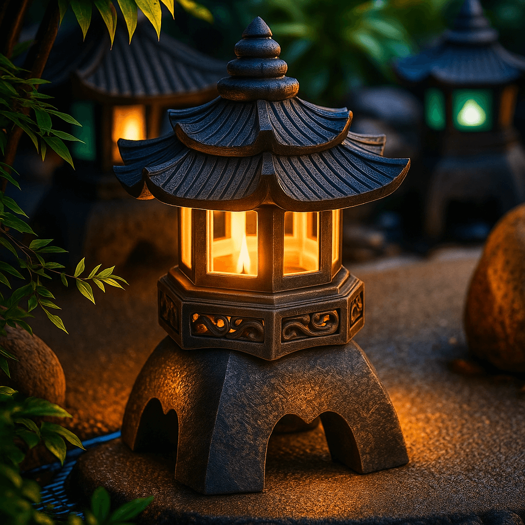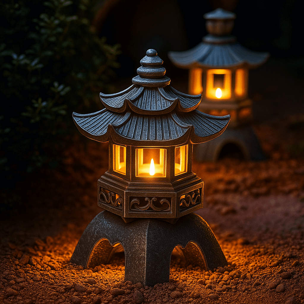 The Zen Pagoda Lantern adds oriental charm and tranquility to your garden. Perfect for a meditative corner or an atmospheric path.